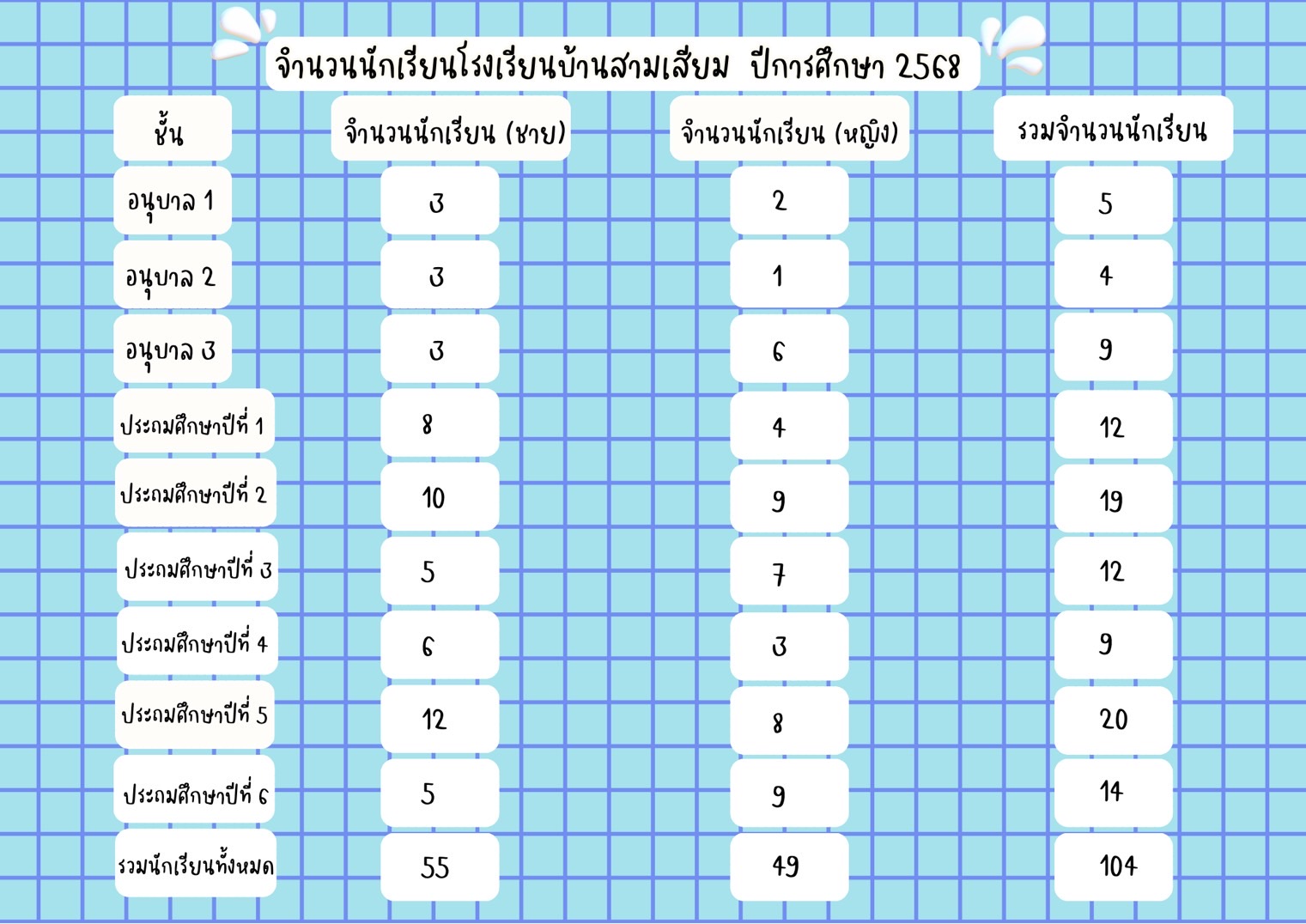 จำนวนนักเรียนโรงเรียนบ้านสามเสียม